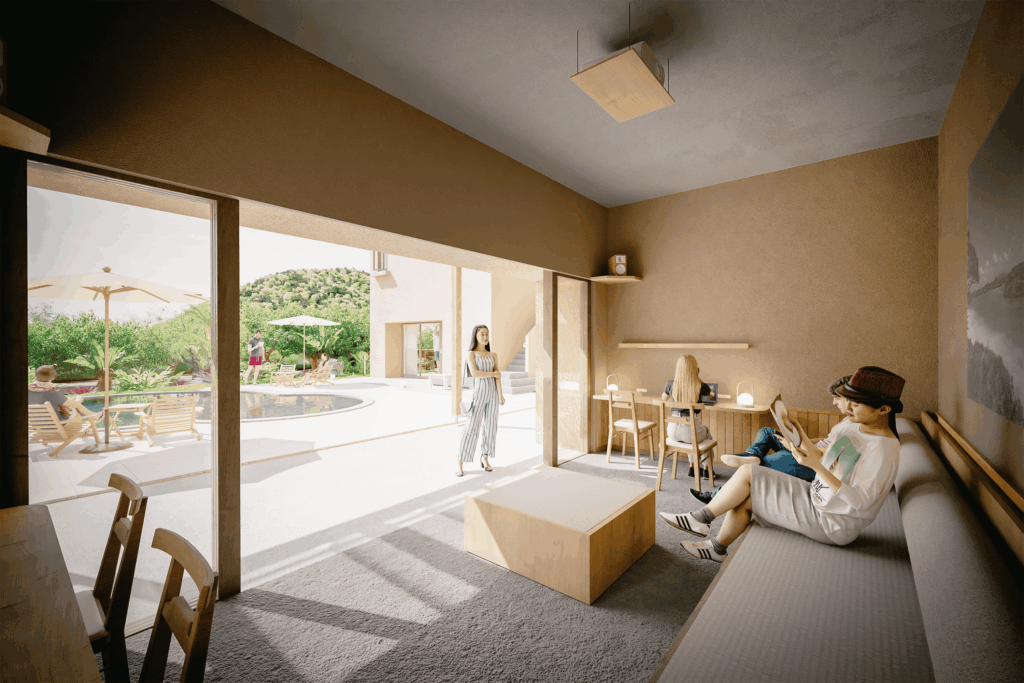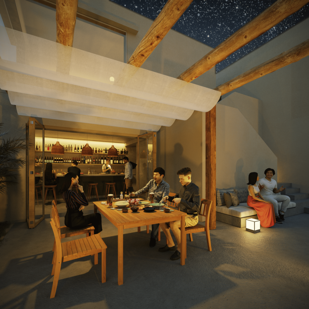 けれど、もし共有部に、時間を気にせず日常の延長のように過ごせるラウンジや、星空の下で語り合えるアウトドアテラスがあれば、滞在はもっと自然体で、より魅力的なものになるのではないかと思いました。